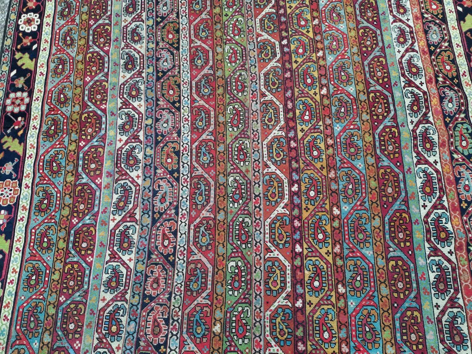 Tappeto autentico passatoia GHARABAGH FINE’800 annodato a mano di provenienza caucasica, originale e in ottime condizioni, unico, raro e pregiato introvabile altrove.